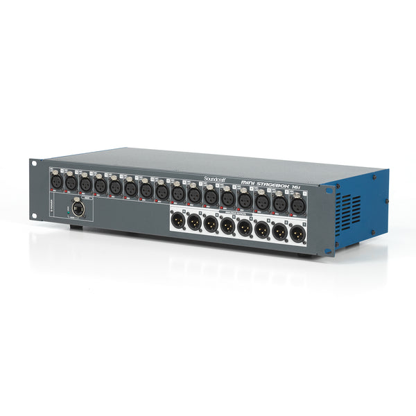 Soundcraft Mini Stagebox 16i combines high-quality components with a streamlined design, making it easy to add multiple channels of remote-controlled I/O to your Si-series mixing console. The Studer-designed mic preamps provide exceptional sound quality, while the compact form factor offers easy transport and fast configuration. Ideal for live engineers, houses of worship, bands, club owners and corporate installations, Soundcraft Mini Stageboxes allow you to replace heavy, expensive analogue snakes with a single RJ45 Cat5 style Ethernet cable.