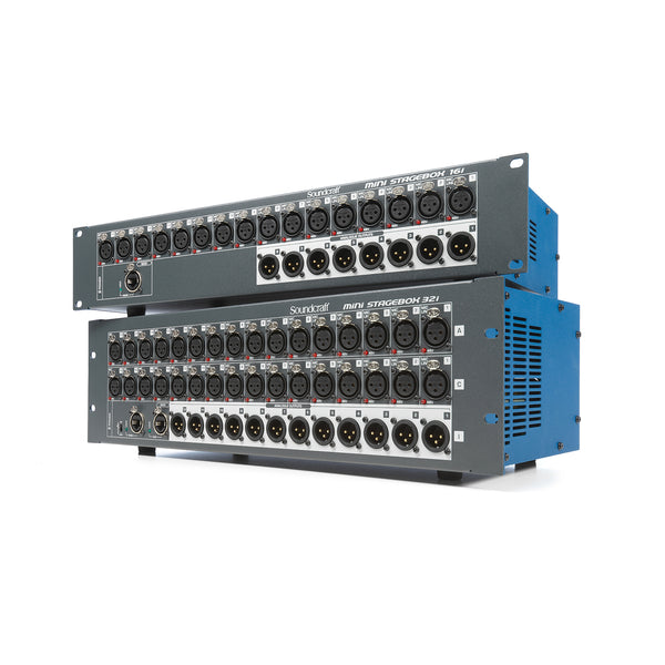 Soundcraft Mini Stagebox 32i combines high-quality components with a streamlined design, making it easy to add multiple channels of remote-controlled I/O to your Si-series mixing console. The Studer-designed mic preamps provide exceptional sound quality, while the compact form factor offers easy transport and fast configuration. Ideal for live engineers, houses of worship, bands, club owners and corporate installations, Soundcraft Mini Stageboxes allow you to replace heavy, expensive analogue snakes with a single RJ45 Cat5 style Ethernet cable.